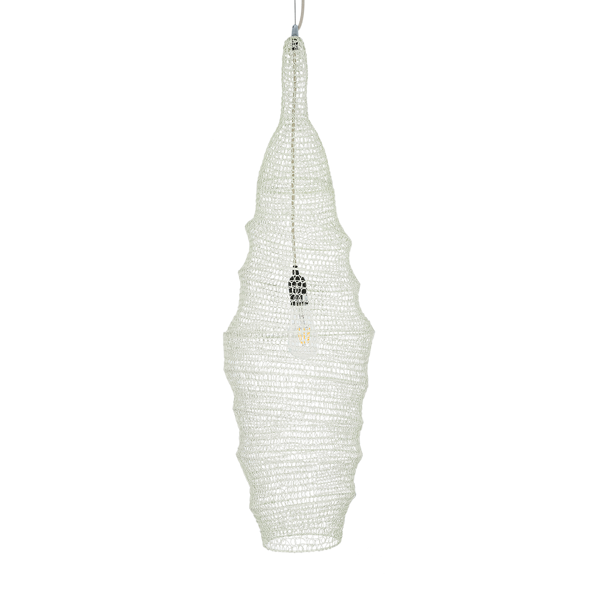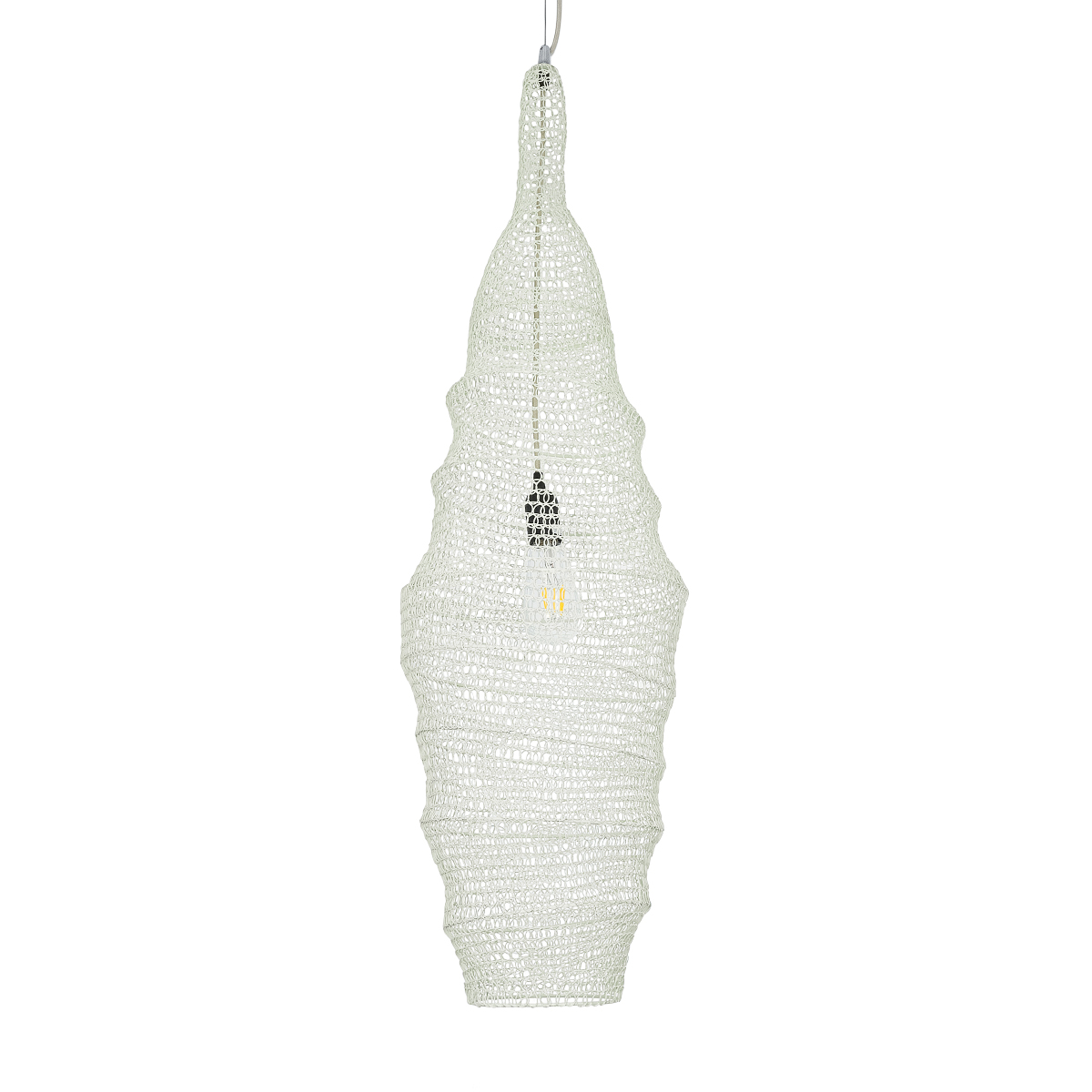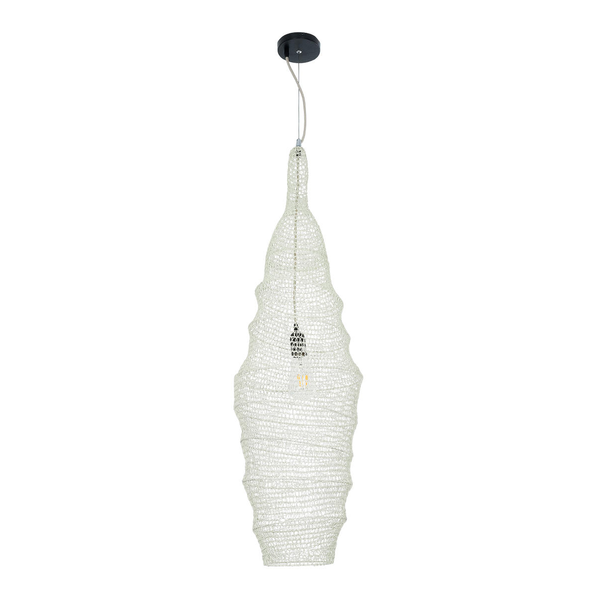 GloboStar® KENTUCKY 01907 Vintage Κρεμαστό Φωτιστικό Οροφής Μονόφωτο 1 x E27 AC220-240V IP20 – Φ30 x Υ105cm – Μπεζ Εκρού Μεταλλικό Πλέγμα