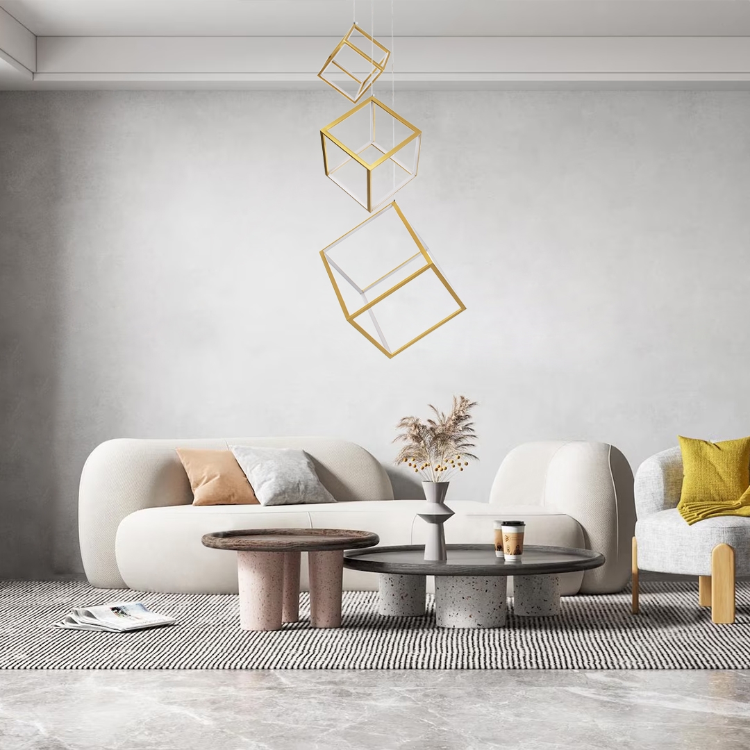 GloboStar® KIBOO-TRIO 60932 Κρεμαστό Φωτιστικό Οροφής Design LED CCT 90W 10350lm 360° AC 220-240V – Εναλλαγή Φωτισμού μέσω Τηλεχειριστηρίου All In One Ψυχρό 6000k+Φυσικό 4500k+Θερμό 2700k Dimmable Μ60 x Π60 x Υ80cm – Χρυσό Πλατίνα – 3 Years Warranty