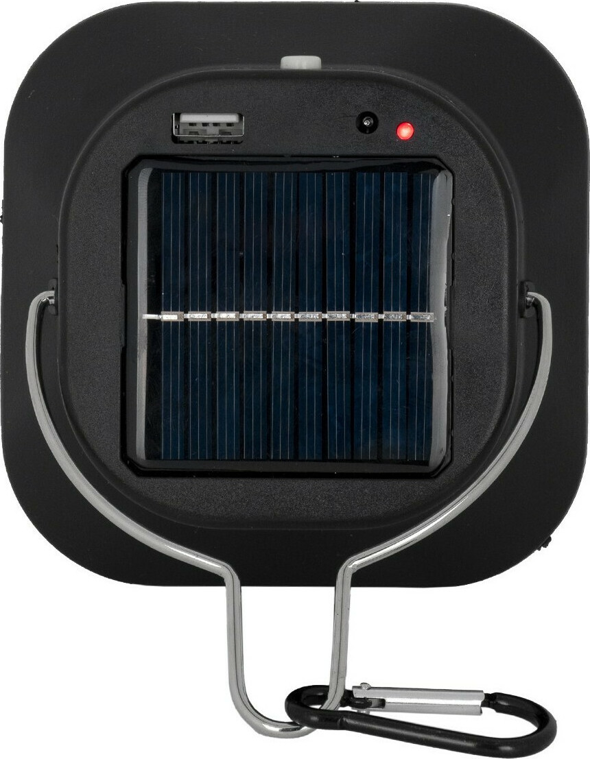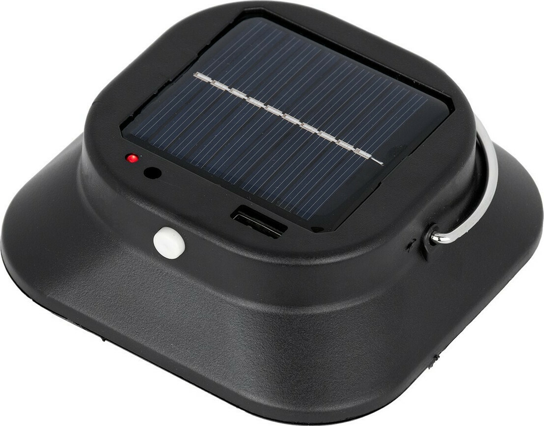 Κρεμαστό ηλιακό φωτιστικό της GloboStar σε λευκό χρώμα, που συγκεντρώνει και αποθηκεύει ηλιακή ενέργεια για τη λειτουργία του, ώστε να μη χρειάζεται να συνδεθεί σε παροχή ρεύματος.