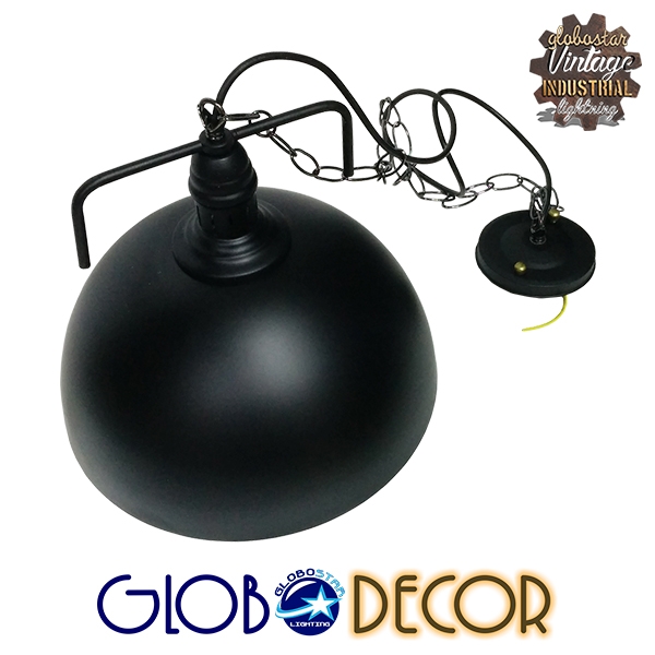 GloboStar® LARKIN 01175 Vintage Κρεμαστό Φωτιστικό Οροφής Μονόφωτο Μαύρο Μεταλλικό Καμπάνα Φ31 x Y30cm