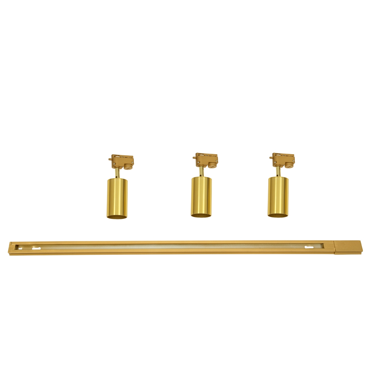 GloboStar® LEO 60359 Μοντέρνο Φωτιστικό Οροφής Ράγα με Κινούμενα Σποτ Αλουμινίου Τρίφωτο 3 x GU10 AC 220-240V IP20 Μ100 x Π6 x Υ20cm – 2 Γραμμών – Χρυσό Πλατίνα – 5 Years Warranty