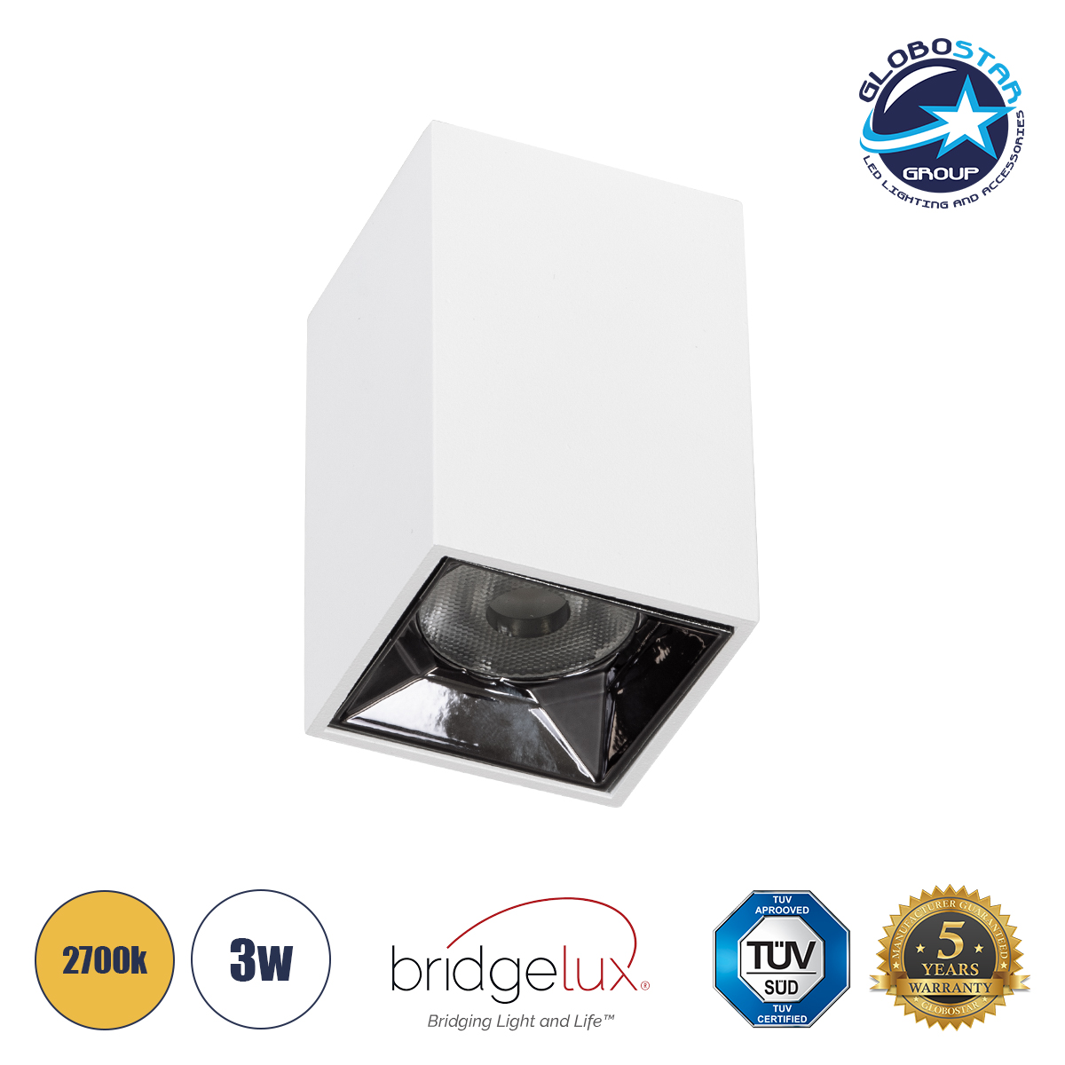 GloboStar® LUMINAR SUPERIOR 60323 Επιφανειακό LED Spot Downlight TrimLess 3W 405lm 36° AC 220-240V IP20 Μ4.2 x Π4.2 x Υ6.6cm – Λευκό με Κάτοπτρο Χρωμίου – Θερμό Λευκό 2700K – Bridgelux High Lumen Chip Gen2 – TÜV Certified Driver – 5 Years Warranty