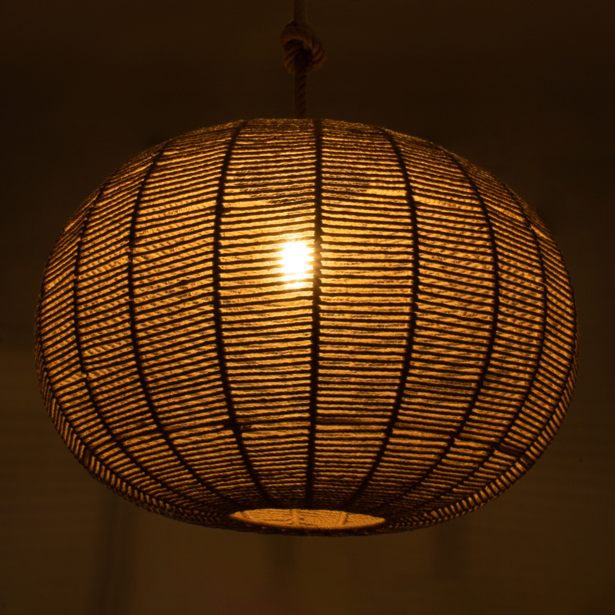 GloboStar® MANDALA 00732 Vintage Κρεμαστό Φωτιστικό Οροφής Μονόφωτο 1 x E27 Πλέγμα με Μπεζ Σχοινί Φ80 x Υ60cm