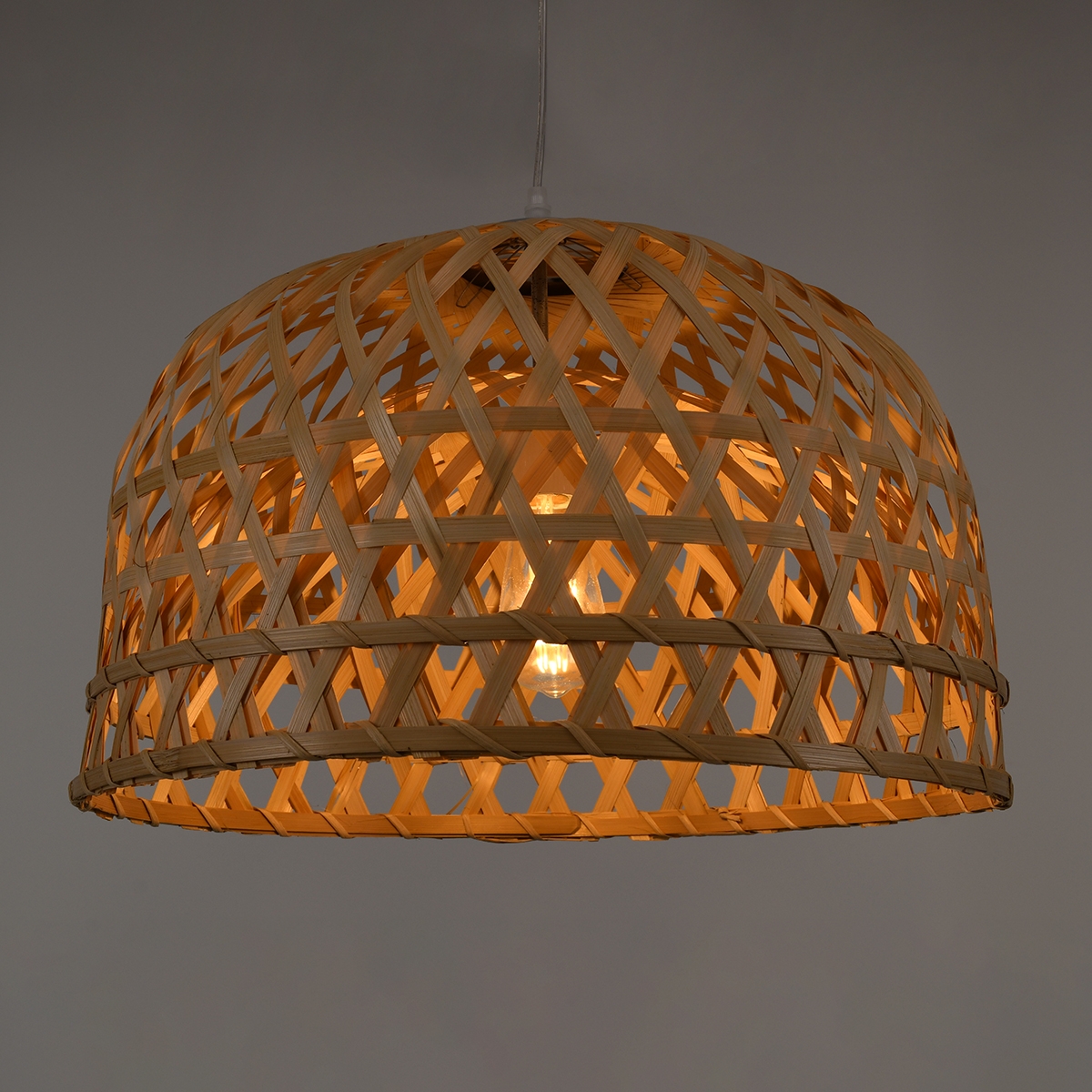 GloboStar® MANGEA 00716 Vintage Κρεμαστό Φωτιστικό Οροφής Μονόφωτο 1 x E27 Καφέ Ξύλινο Μπαμπού Φ50 x Y34cm