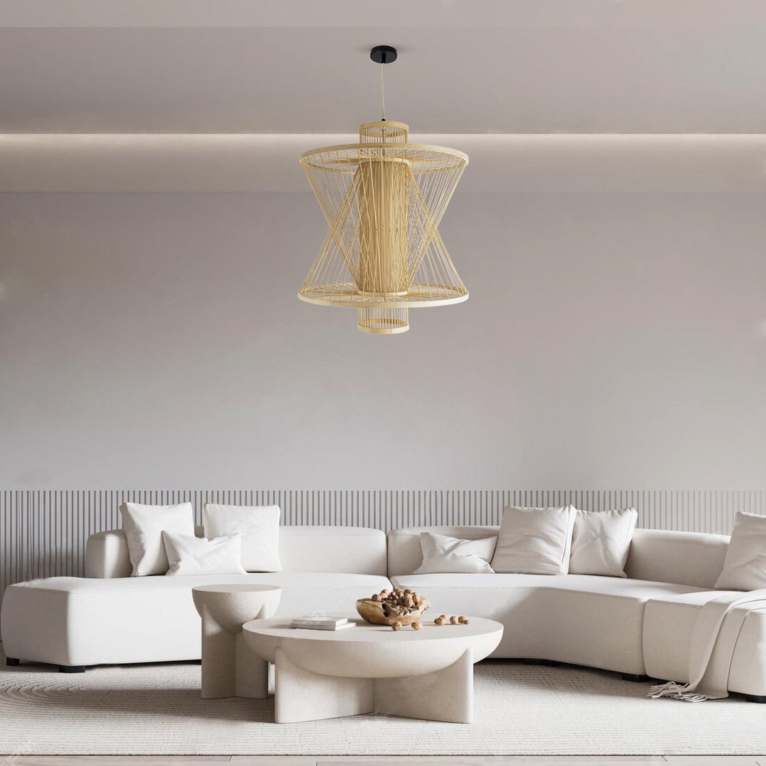 GloboStar® MANGO 01931 Boho Κρεμαστό Φωτιστικό Οροφής Μονόφωτο 1 x E27 AC220-240V IP20 – Φ50 x Υ60cm – Μπεζ Ξύλινο Πλέγμα – 5 Years Warranty