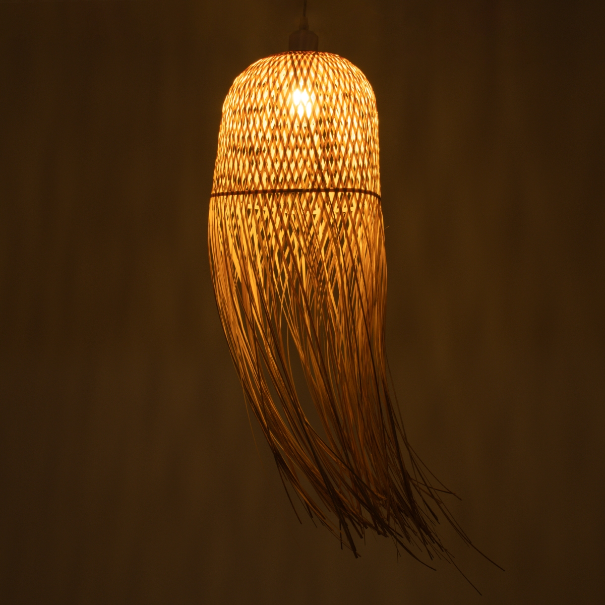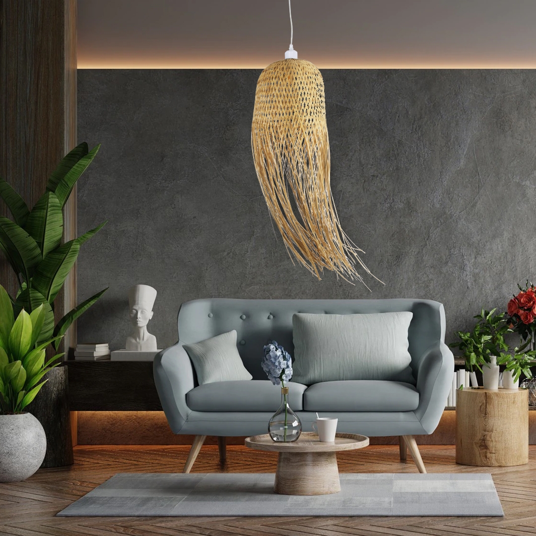 GloboStar® MANILA 01713 Μοντέρνο Κρεμαστό Φωτιστικό Οροφής Μονόφωτο 1 x E27 Μπεζ Μπαμπού Καμπάνα Φ25 x Υ60cm