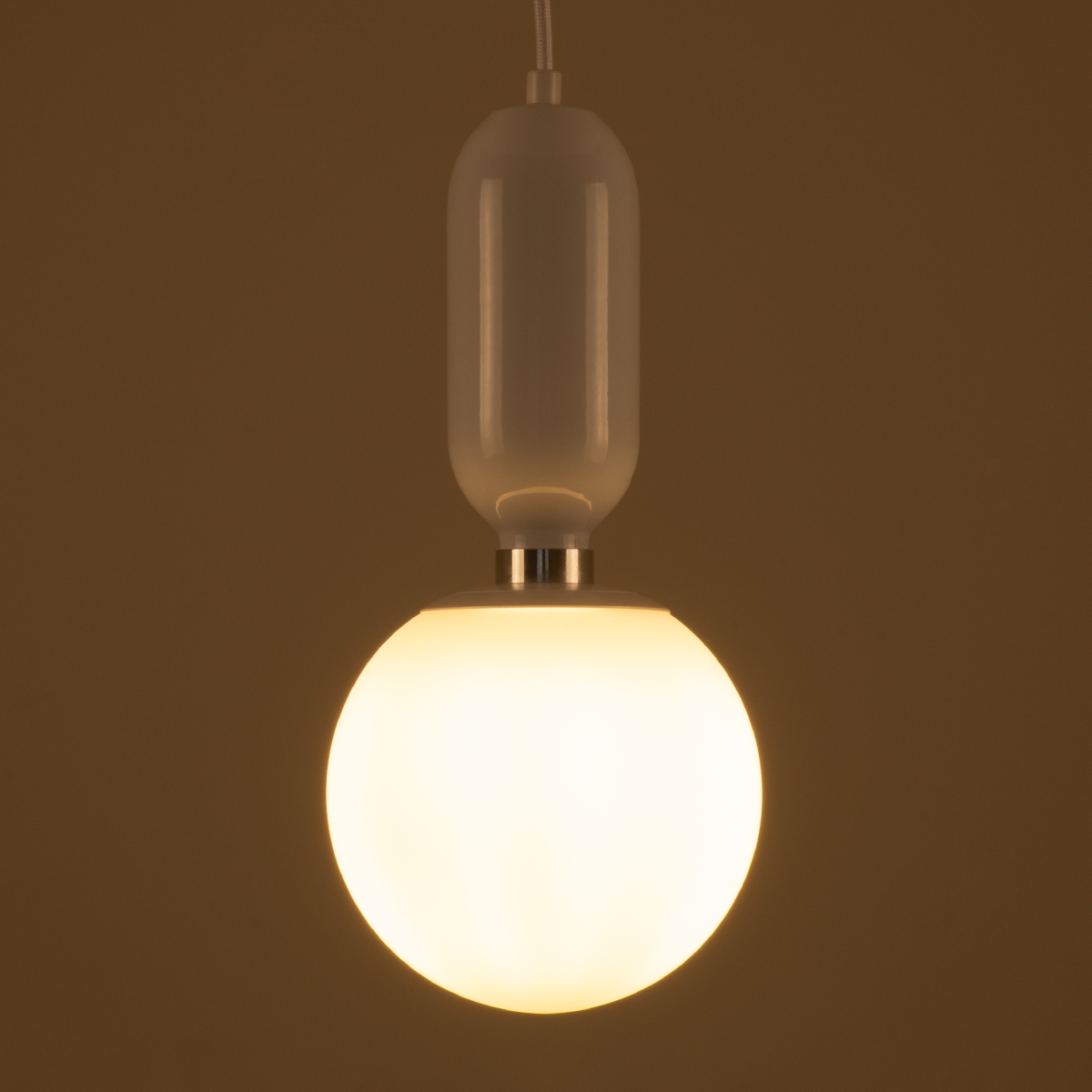 GloboStar® MAVERICK 00944 Μοντέρνο Κρεμαστό Φωτιστικό Οροφής Μονόφωτο 1 x E27 Λευκό Μεταλλικό Γυάλινο Μπάλα Φ15 x Υ33cm