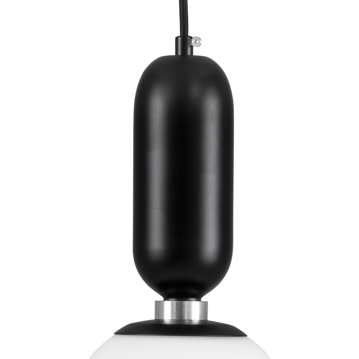GloboStar® MAVERICK 00945 Μοντέρνο Κρεμαστό Φωτιστικό Οροφής Μονόφωτο 1 x E27 Μαύρο Μεταλλικό Γυάλινο Μπάλα Φ15 x Υ33cm