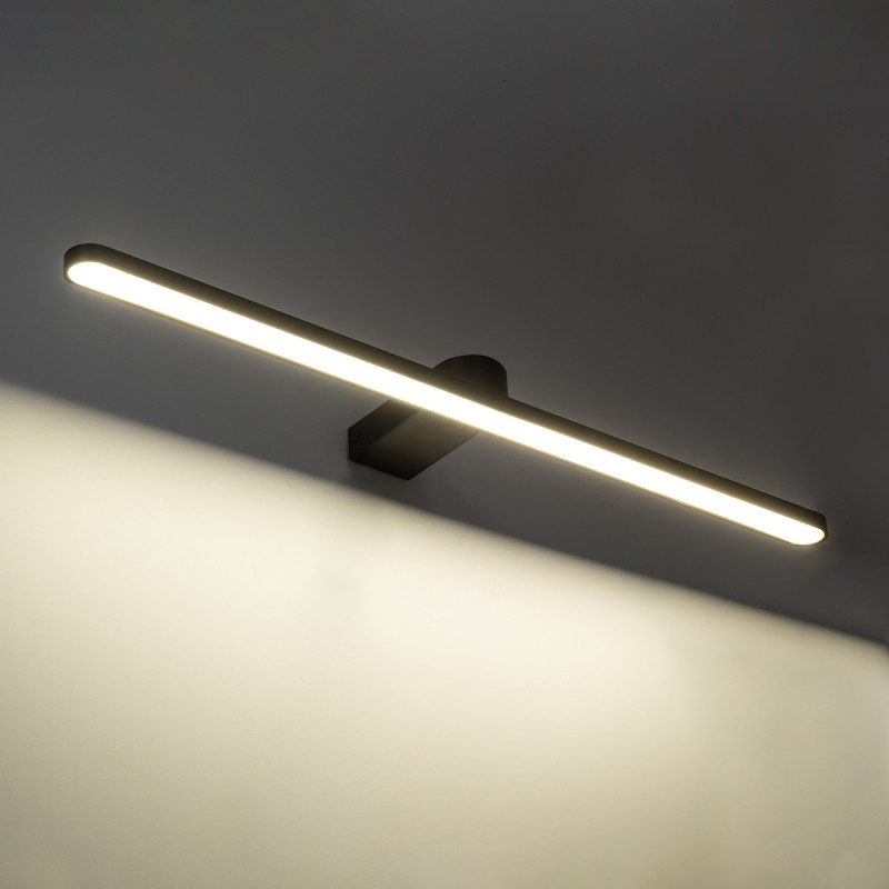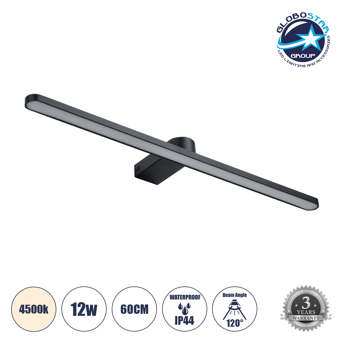 GloboStar® MEGAN 60448 Μοντέρνο Φωτιστικό Τοίχου – Απλίκα Καθρέπτη Μπάνιου – Πίνακα LED 12W 1400lm 120° AC 220-240V IP44 Μ60 x Π12 x Υ4cm – Φυσικό Λευκό 4500K – Μαύρο – 3 Years Warranty