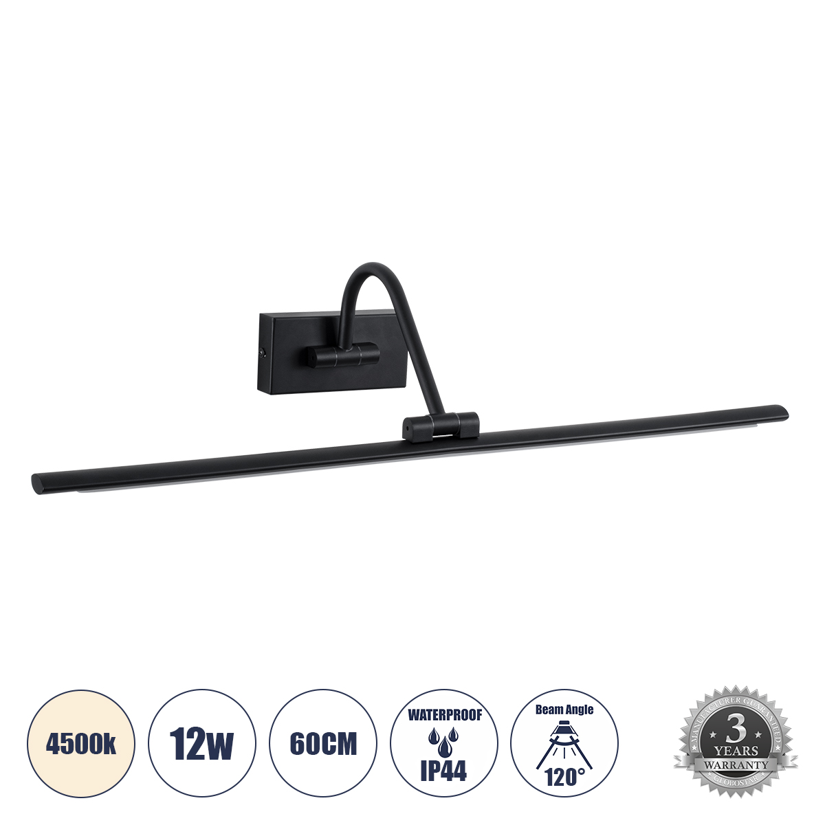 GloboStar® MIRA 60432 Μοντέρνο Φωτιστικό Τοίχου – Απλίκα Καθρέπτη Μπάνιου – Πίνακα LED 12W 1400lm 120° AC 220-240V IP44 Μ60 x Π20 x Υ13cm – Φυσικό Λευκό 4500K – Μαύρο – 3 Χρόνια Εγγύηση