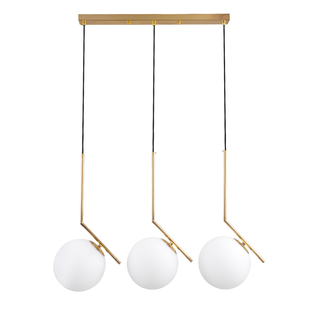 GloboStar® MONROE 00955 Μοντέρνο Κρεμαστό Φωτιστικό Οροφής Τρίφωτο 3 x E27 Χρυσό – Λευκό Μεταλλικό Μπάλα Μ74 x Π25 x Υ50cm