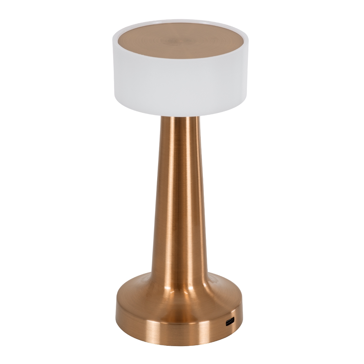 GloboStar® NANNA 76474 Μοντέρνο Επιτραπέζιο Φωτιστικό Πορτατίφ LED 1.5W 105lm 120° DC 5V Επαναφορτιζόμενο με Μπαταρία Li-ion 1800mAh – Διακόπτη Αφής με 3 Εναλλαγές Φωτισμού CCT Θερμό – Φυσικό – Ψυχρό 1500K – 4500K – 6000K Dimmable – D9 x 21cm – Χάλκινο