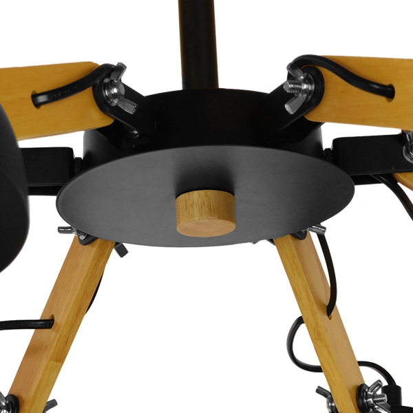 GloboStar® OLD SCHOOL 01094 Μοντέρνο Φωτιστικό Οροφής Πολύφωτο Μαύρο Μεταλλικό με Φυσικό Ξύλο Καμπάνα Φ75 x Y38cm