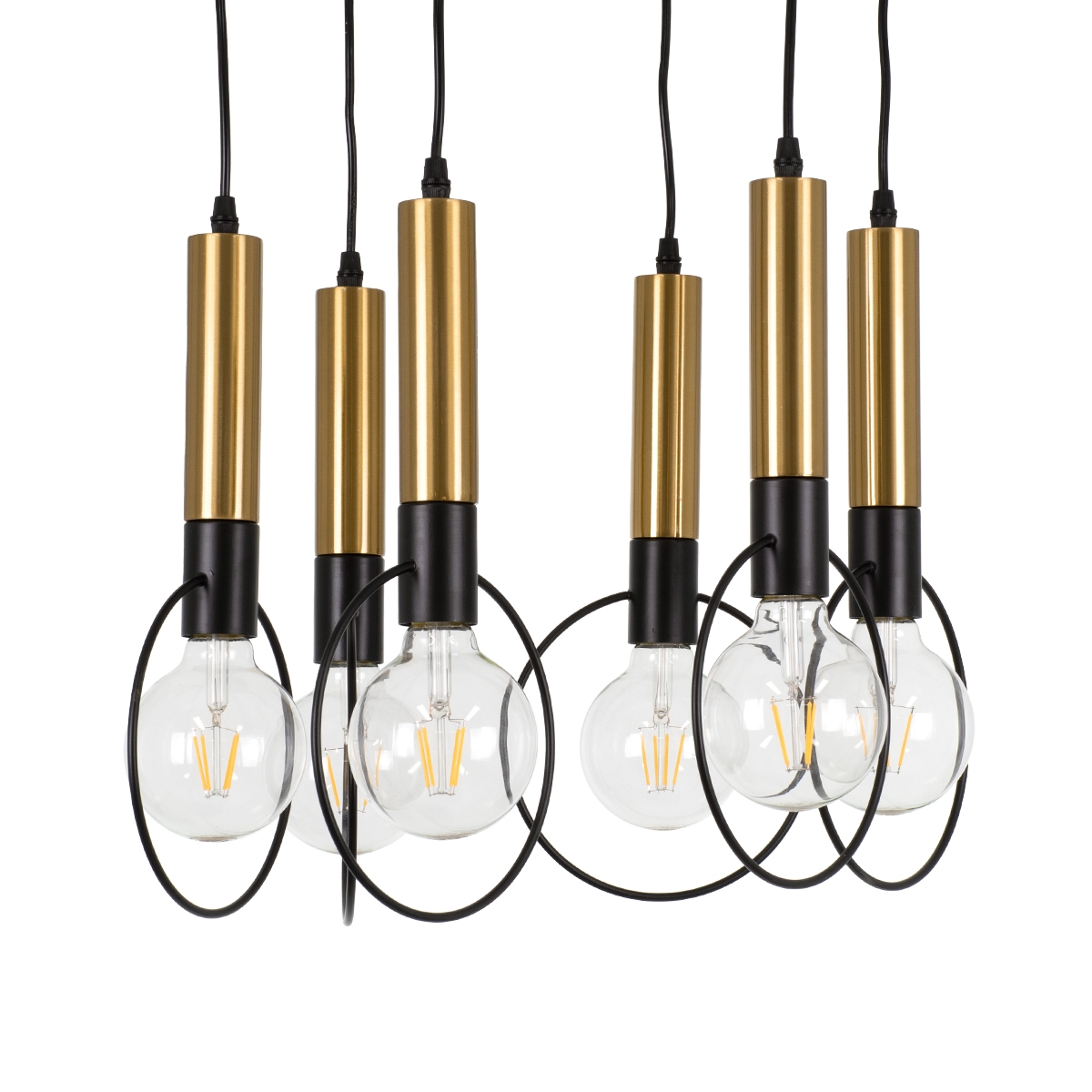 GloboStar® OLVERO 00774 Μοντέρνο Κρεμαστό Φωτιστικό Οροφής Πολύφωτο 6 x E27 Μαύρο – Χρυσό Μεταλλικό Πλέγμα Φ55 x Y130cm