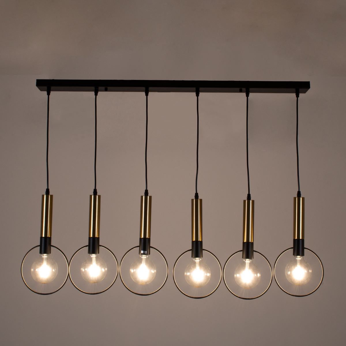 GloboStar® OLVERO 00776 Μοντέρνο Κρεμαστό Φωτιστικό Οροφής Πολύφωτο 6 x E27 Μαύρο – Χρυσό Μεταλλικό Πλέγμα Μ110 x Π18 x Y130cm