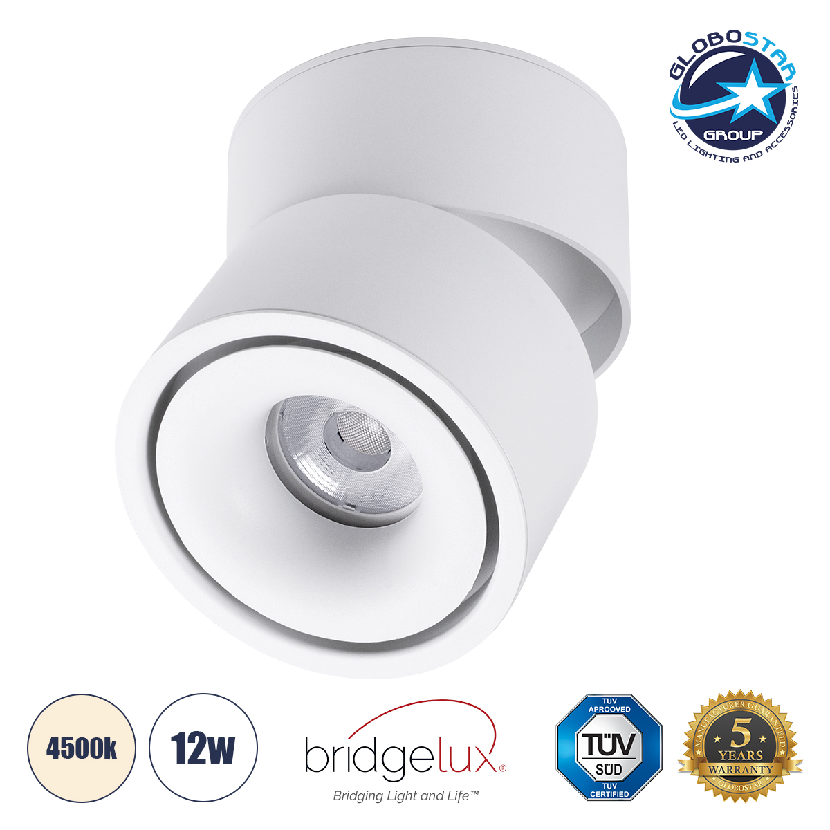 GloboStar® OMEGA-S 60298 Επιφανειακό LED Spot Downlight Φ10cm 12W 1560lm 36° AC 220-240V IP20 Φ10 x Υ10.5cm – Στρόγγυλο – Λευκό – Φυσικό Λευκό 4500K – Bridgelux COB – 5 Years Warranty