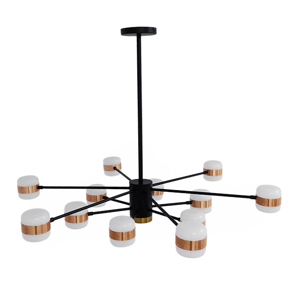 GloboStar® ORNATE 01553 Μοντέρνο Φωτιστικό Οροφής LED 104 Watt Πολύφωτο Μαύρο με Μπρονζέ και Χρυσές Λεπτομέρειες Μεταλλικό Λευκό Ημέρας 4500k Φ63 x Y36-45cm