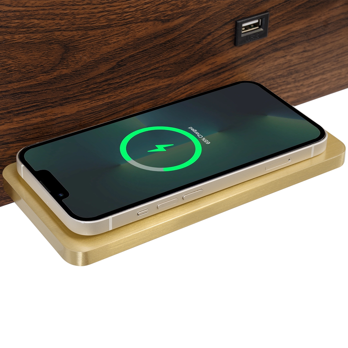 GloboStar® PALADIN 61362 Μοντέρνο Φωτιστικό Τοίχου – Απλίκα Ξενοδοχείου Bed Side LED 6W 720lm 36° AC 220-240V – Reading Light & Κρυφός Φωτισμός – Φορτιστές USB 3A & Wireless 20W – Μ30 x Π11 x Υ12cm – Φυσικό Λευκό 4500K – Ξύλο & Χρυσό – Δεξί