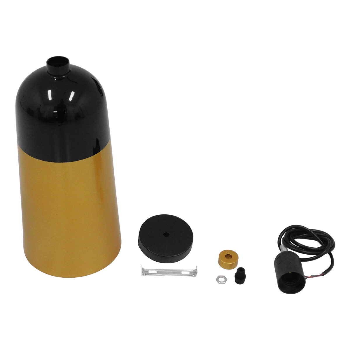 GloboStar® PALAZZO 01523 Μοντέρνο Κρεμαστό Φωτιστικό Οροφής Μονόφωτο Μαύρο – Χρυσό Μεταλλικό Καμπάνα Φ14 x Υ34cm
