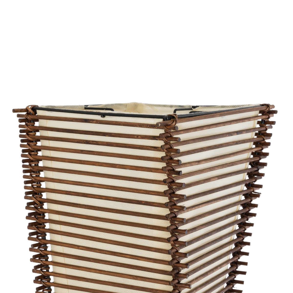 GloboStar® PALMA 02273 Boho Επιδαπέδιο Φωτιστικό Δίφωτο 2 x E27 AC220-240V IP20 – Μ34 x Π34 x Υ130cm – Καφέ Ξύλινο Μπαμπού Πλέγμα με Μπεζ Ύφασμα – 5 Χρόνια Εγγύηση