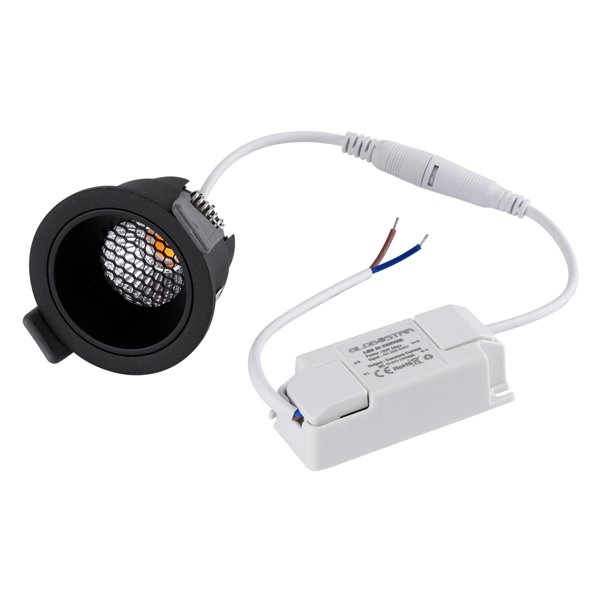 GloboStar® PLUTO-S 60251 Χωνευτό LED Spot Downlight TrimLess Φ6.4cm 7W 875lm 38° AC 220-240V IP20 Φ6.4 x Υ4.9cm – Στρόγγυλο – Μαύρο & Anti-Glare HoneyComb – Θερμό Λευκό 2700K – Bridgelux COB – 5 Years Warranty