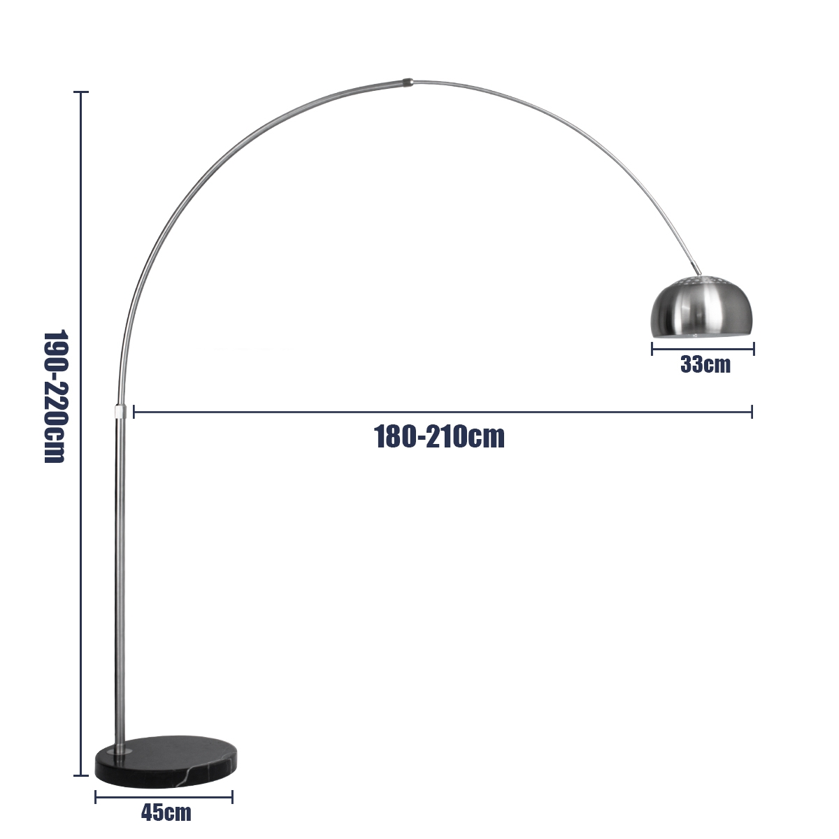 GloboStar® PRAGUE 00990 Μοντέρνο Φωτιστικό Δαπέδου Μονόφωτο 1 x E27 Ασημί Μεταλλικό Καμπάνα & Μαύρη Μαρμάρινη Βάση L210 x W45 x H220cm