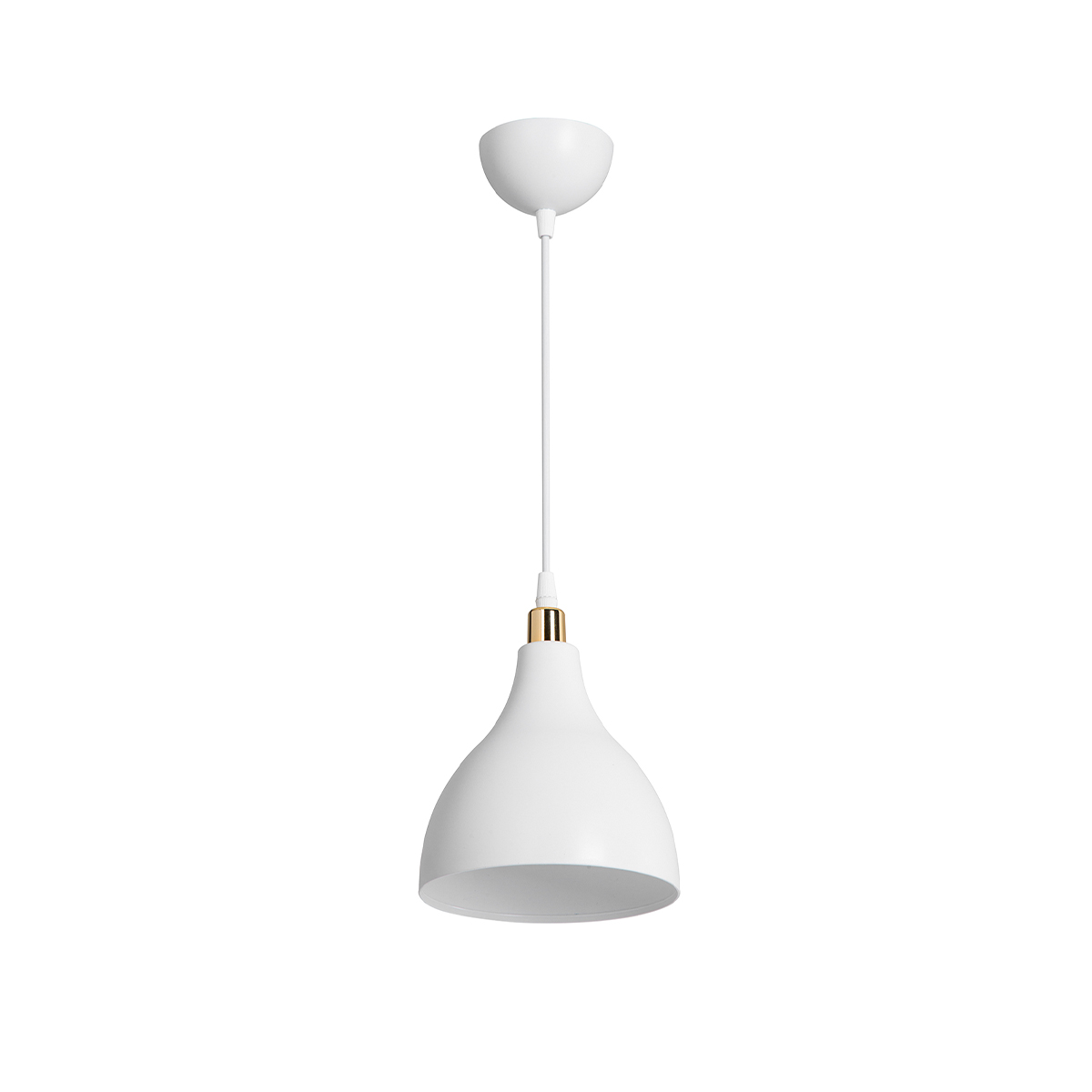 GloboStar® RADE 203-0125 Μοντέρνο Κρεμαστό Φωτιστικό Καμπάνα Μονόφωτο 1 x E27 IP20 Λευκό με Χρυσό Πλαστικό – Μ17.5 x Π17.5 x Υ56cm