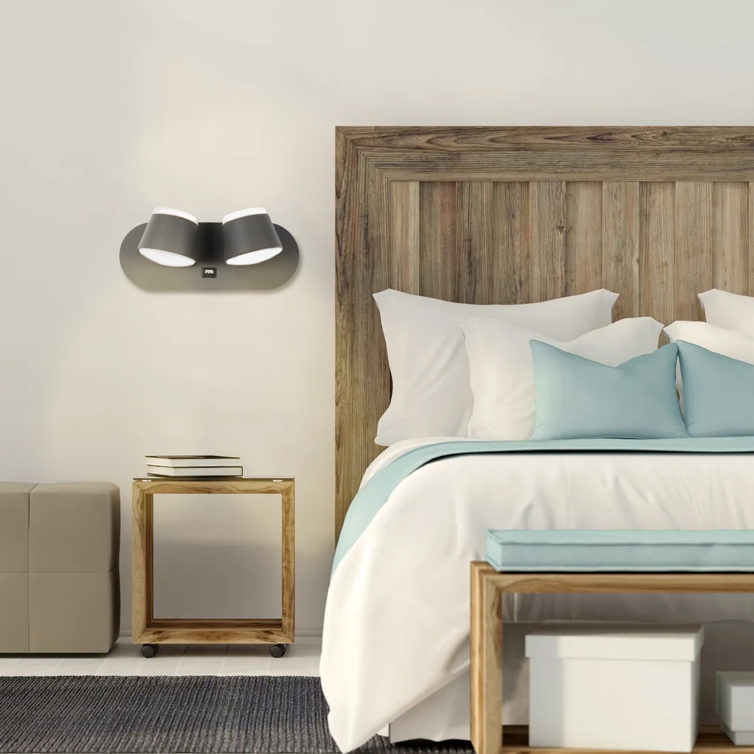 GloboStar® REGENCY 61378 Μοντέρνο Φωτιστικό Τοίχου – Απλίκα Ξενοδοχείου Bed Side LED 16W 1840lm 120° AC 220-240V – Reading Up/Down Light – Φορτιστής USB 3A – Μ16.5 x Π12 x Υ10cm – Φυσικό Λευκό 4500K – Γκρι Ανθρακί