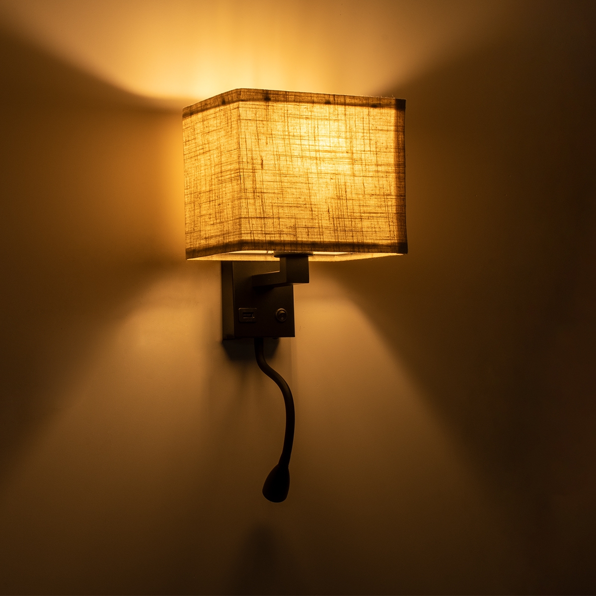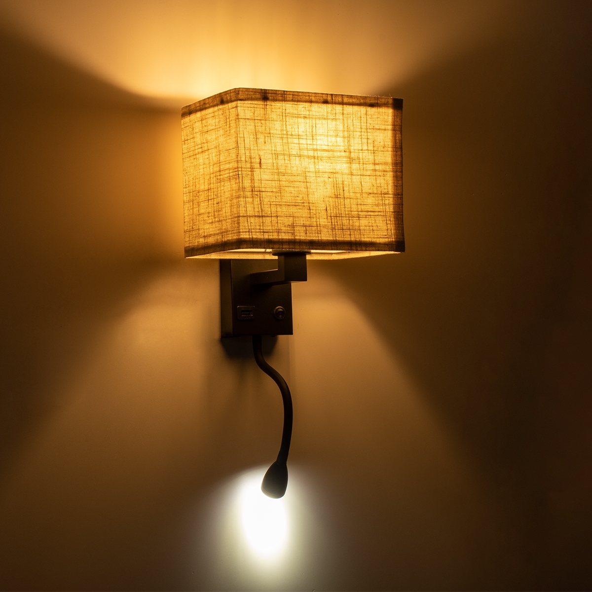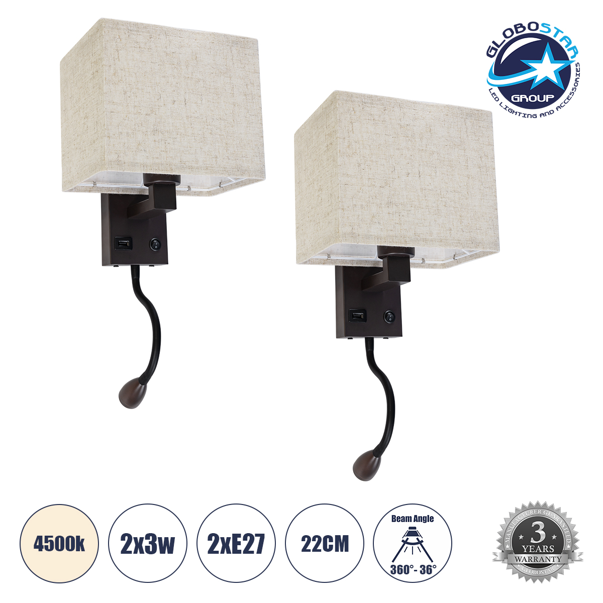 GloboStar® ROULETTE-S 61384 Μοντέρνο Φωτιστικό Τοίχου – Απλίκα Ξενοδοχείου Bed Side LED 3W 360lm & 1 x E27 36° & 360° AC 220-240V – Reading Up/Down Light – Φορτιστής USB 3A – Μ17 x Π20 x Υ37cm – Φυσικό Λευκό 4500K – Καφέ με Μπεζ Καπέλο – Σετ 2 Τεμαχίων