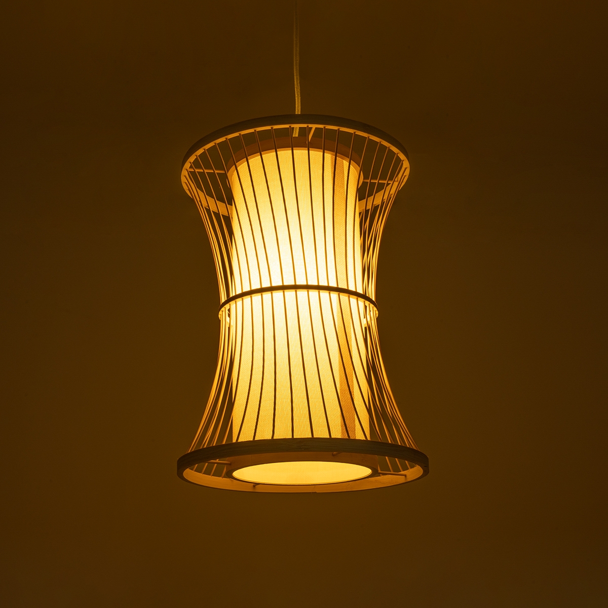 GloboStar® TIKI 01932 Boho Κρεμαστό Φωτιστικό Οροφής Μονόφωτο 1 x E27 AC220-240V IP20 – Φ30 x Υ40cm – Μπεζ Ξύλινο Πλέγμα – 5 Years Warranty