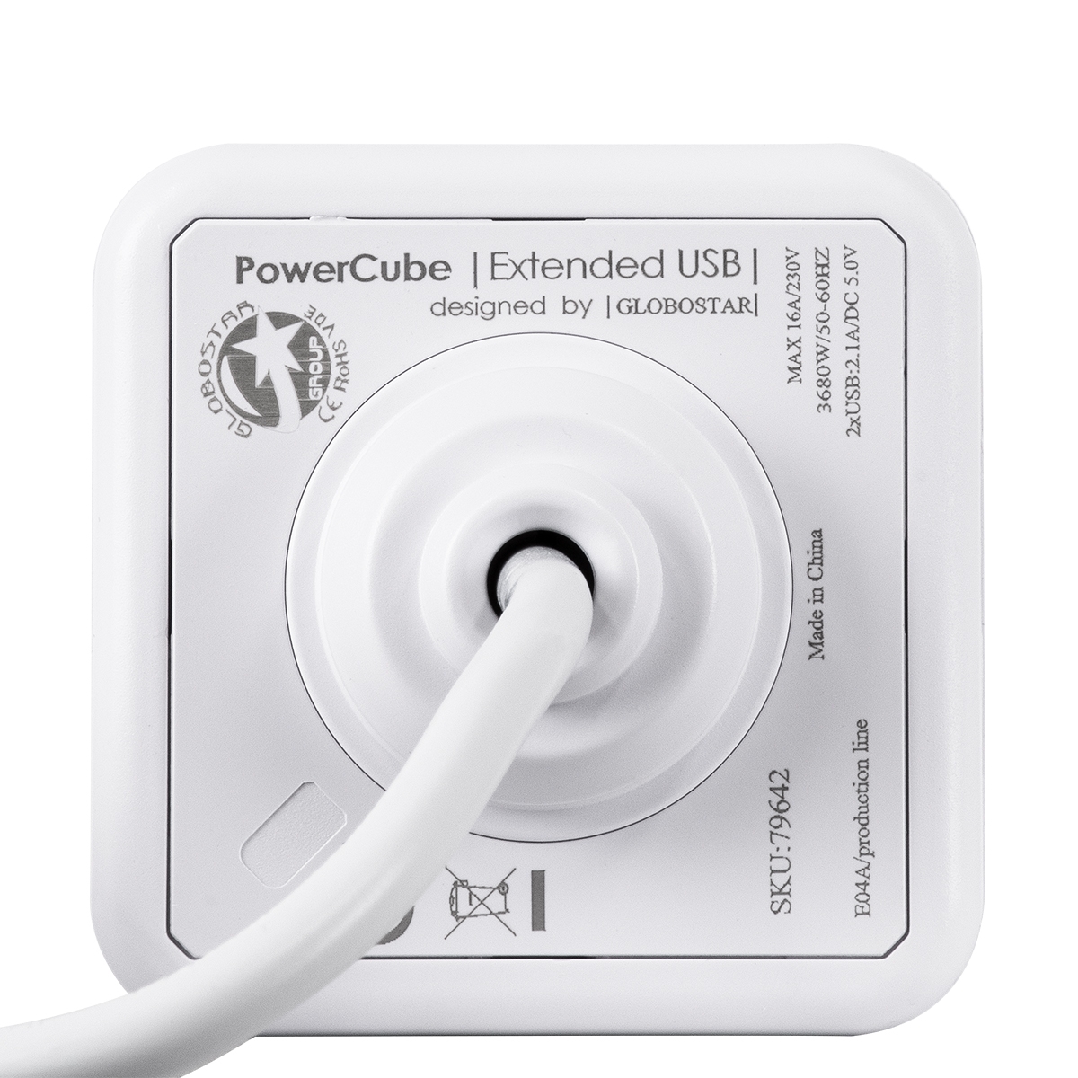 GloboStar® TRAVEL PowerCube PRO Certified 79639 Πολύπριζο 6 Θέσεων με 1.5m Kαλώδιο – 4 Πρίζες Ασφαλείας Childproof EU Schuko AC 220-240V & 2 Πρίζες USB Max 2.1A/DC 5V Μ7.5 x Π7.5 x Υ7.5 – Λευκό με Γκρι – Max Load 3680W/16A