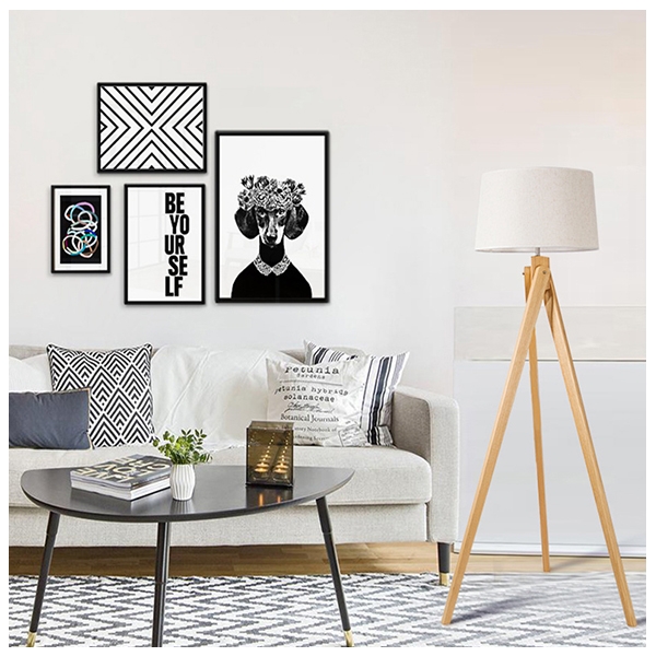 GloboStar® TRIPOD 01263 Μοντέρνο Φωτιστικό Δαπέδου Μονόφωτο 1 x E27 Μπεζ Ξύλινο Καμπάνα D40 x H143cm