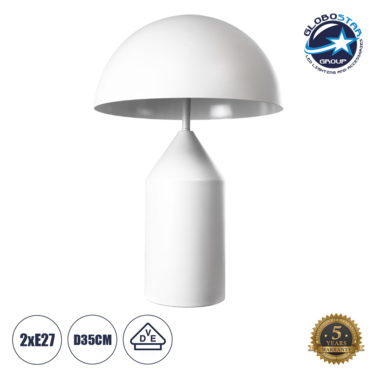 GloboStar® URANUS-M 61454 Μοντέρνο Επιτραπέζιο Φωτιστικό Πορτατίφ Δίφωτο 2 x E27 AC220-240V IP20 – Φ35 x Υ54cm – Λευκό Μεταλλικό Καμπάνα με Διακόπτη On/Off – 5 Years Warranty