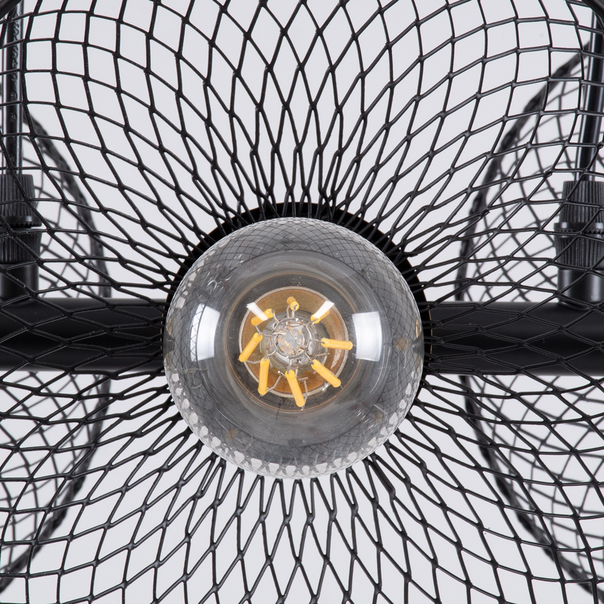 GloboStar® VERONA 00586 Μοντέρνο Κρεμαστό Φωτιστικό Οροφής Τρίφωτο 3 x E27 Μαύρο Μεταλλικό Πλέγμα Μ50 x Π28 x Υ20cm