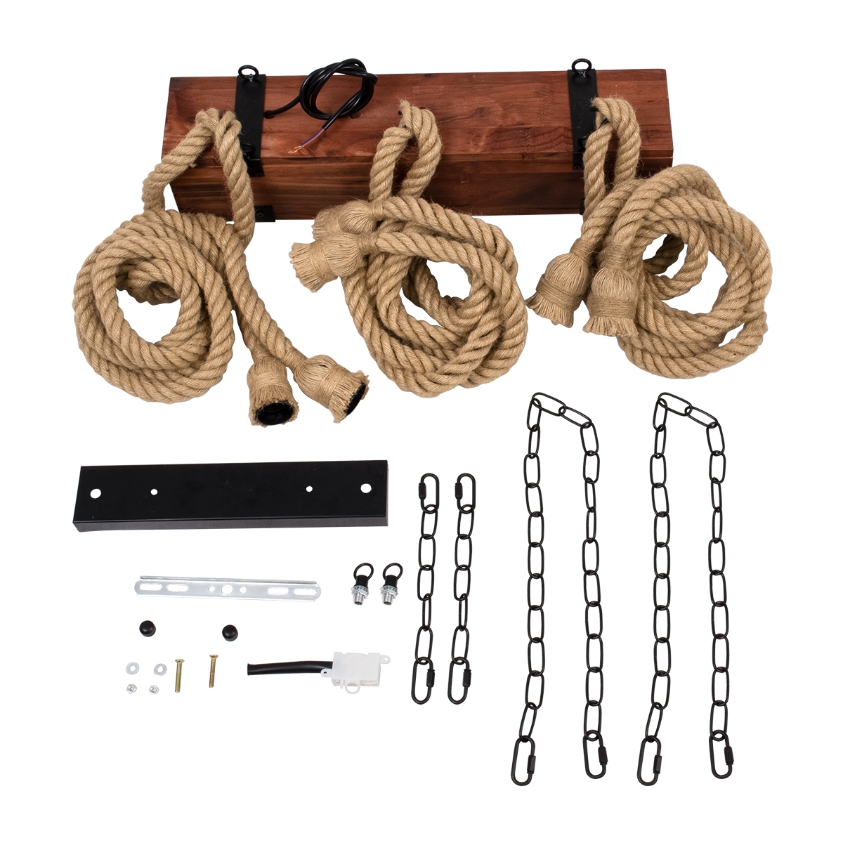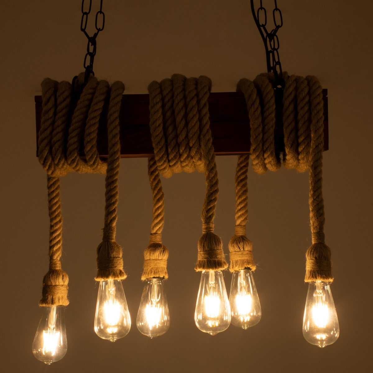 GloboStar® VIKING 00606 Vintage Κρεμαστό Φωτιστικό Οροφής Πολύφωτο 6 x E27 Σκούρο Καφέ Μεταλλικό Ξύλινο Ράγα Μ53 x Π11 x Υ96cm έως Y220cm max