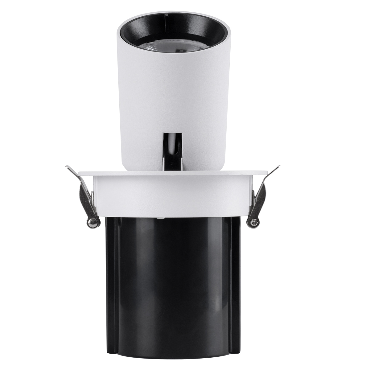 GloboStar® VIRGO-M 60307 Χωνευτό LED Spot Downlight TrimLess Φ11cm 12W 1500lm 36° AC 220-240V IP20 Φ11cm x Υ11.5cm – Στρόγγυλο – Λευκό με Μαύρο Κάτοπτρο – Θερμό Λευκό 2700K – Bridgelux COB – 5 Years Warranty