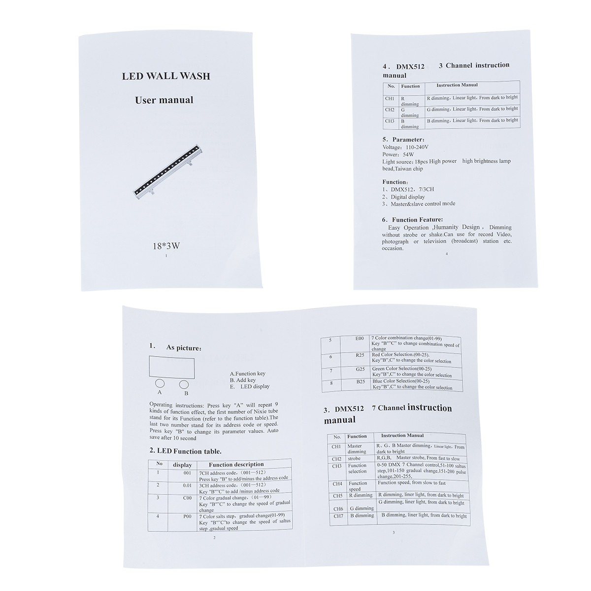 Light Color – Χρώμα Φωτισμού : Multi Color RGB ( Changeable by DMX512 Controller or Console ) – Πολύχρωμο RGB ( Ρυθμιζόμενο μέσω DMX512 Controller ή Κονσόλας )