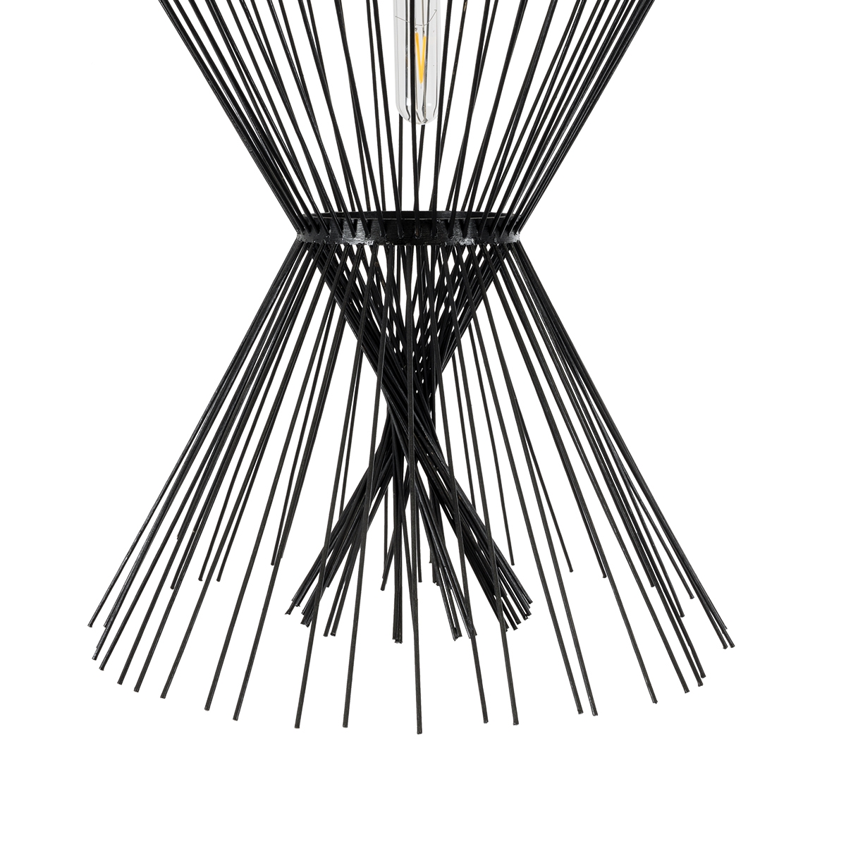 GloboStar® YOSHI 01929 Boho Κρεμαστό Φωτιστικό Οροφής Μονόφωτο 1 x E27 AC220-240V IP20 – Φ35 x Υ60cm – Μαύρο Ξύλινο Πλέγμ