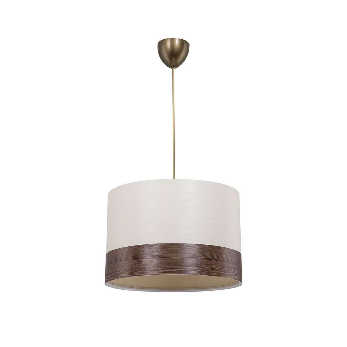 GloboStar® ZYKLUS 203-0103 Μοντέρνο Κρεμαστό Φωτιστικό Καπέλο Μονόφωτο 1 x E27 IP20 Λευκό Ύφασμα με Καρυδί Τελείωμα- Μ36 x Π36 x Υ73cm