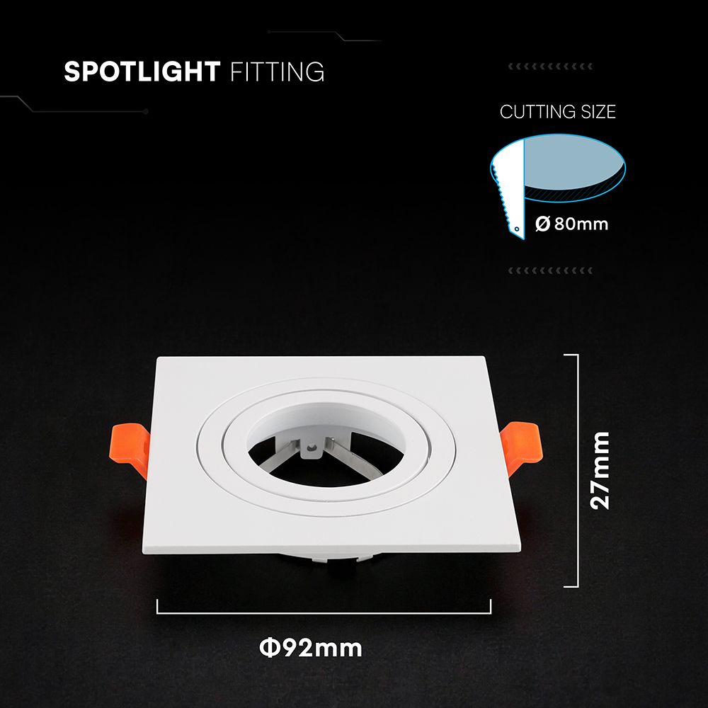 Βάση Σποτ GU10 – MR16 V-TAC Χωνευτή Τετράγωνη Λευκή Ματ 24226VT