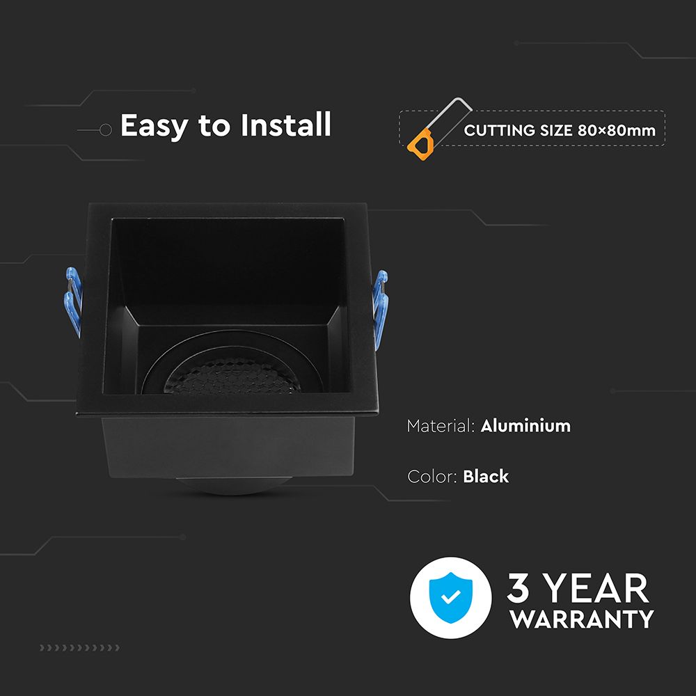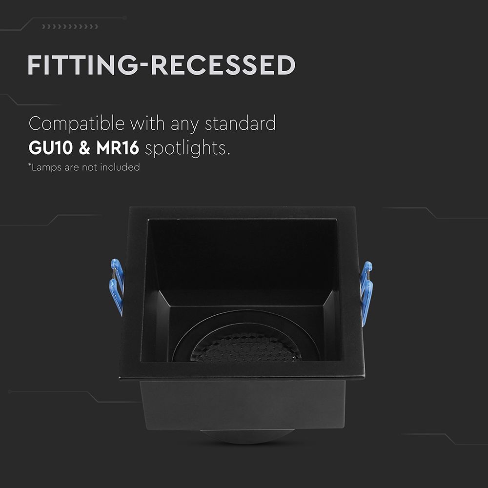 Επιλέξτε τη Χωνευτή Βάση Σποτ GU10 Τετράγωνη Μαύρη Αλουμινίου Βαθιά με Κυψέλες V-TAC 23764 για να αναβαθμίσετε τον φωτισμό του χώρου σας με στυλ και λειτουργικότητα.