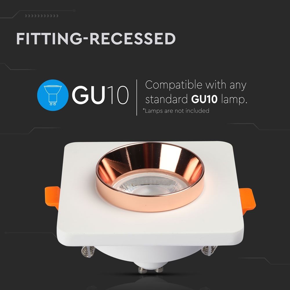 Γύψινη Βάση GU10 – MR16 V-TAC Χωνευτή Τετράγωνη Χάλκινο-Λευκό – 3117