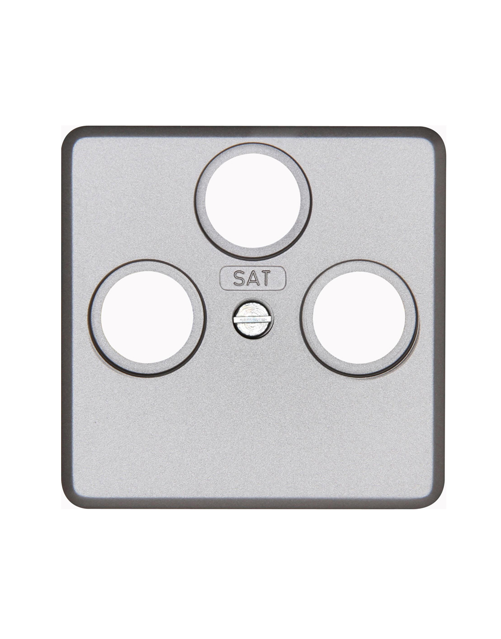 Πλακίδιο για πρίζα τηλεόρασης/ραδιοφώνου/δορυφορική Κopp HK02. Είναι από θερμοπλαστικό υλικό σε ασημί γυαλιστερό χρώμα.