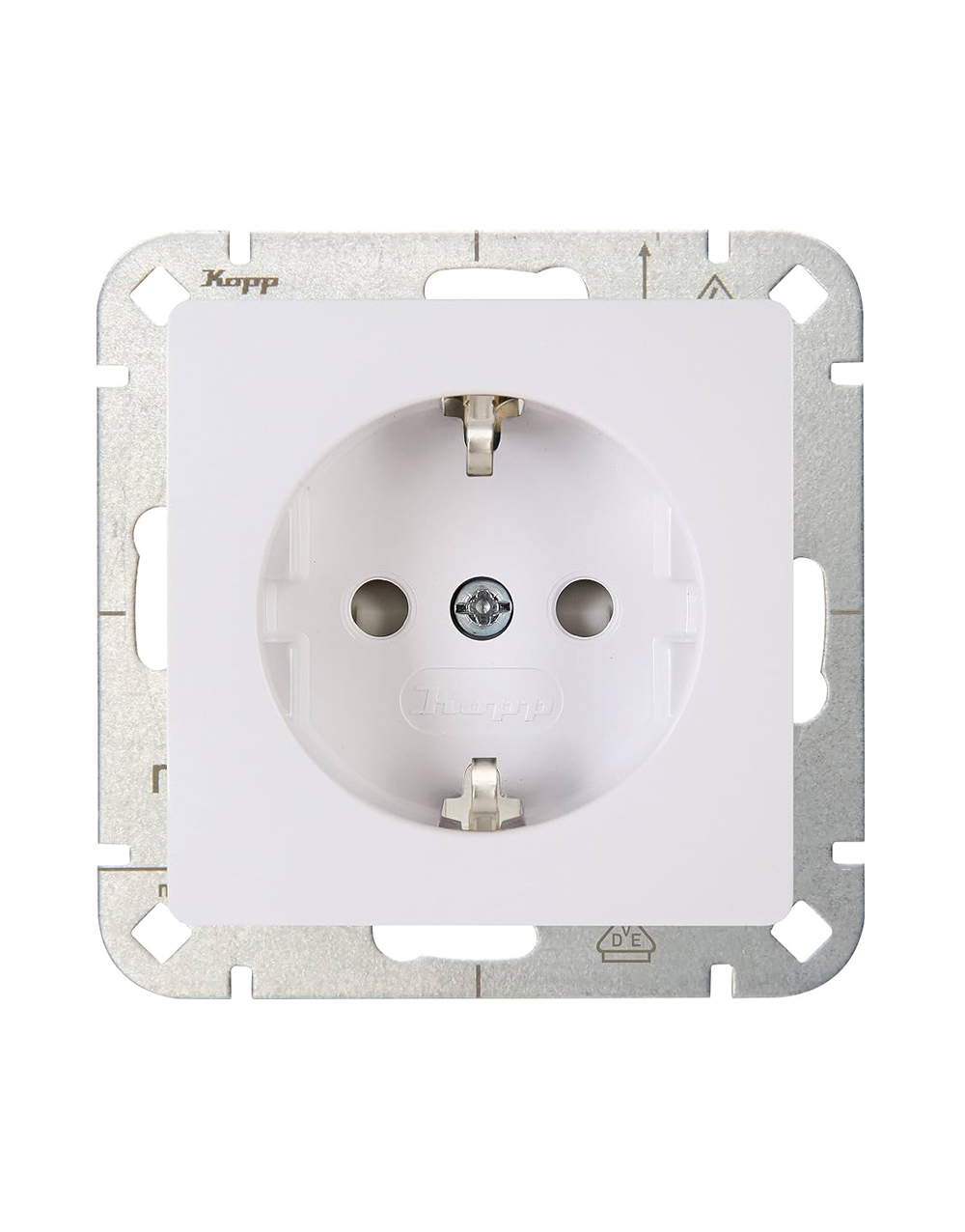 Πρίζα σούκο τύπου Kopp HK05 σε χρώμα λευκό. Έχει τάση τροφοδοσίας 250V και ένταση ρεύγυαλιστερόος 16A. Η σύνδεση γίνεται με βιδωτό ακροδέκτη και η στερέωση με άγκιστρο και βίδα. Ο βαθμός στεγανότητας είναι IP20. Ο μηχανισμός και η υποδοχή της πρίζας πωλούνται μαζί ενώ το πλαίσιο ξεχωριστά.