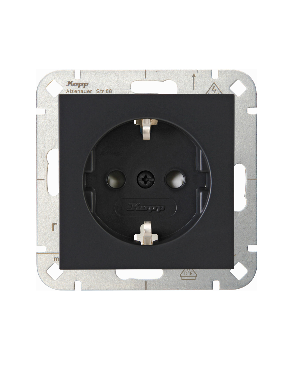 Πρίζα σούκο τύπου Kopp HK07 σε χρώμα ανθρακί ματ. Έχει τάση τροφοδοσίας 250V και ένταση ρεύγυαλιστερόος 16A. Η σύνδεση γίνεται με βιδωτό ακροδέκτη και η στερέωση με άγκιστρο και βίδα. Ο βαθμός στεγανότητας είναι IP20. Ο μηχανισμός και η υποδοχή της πρίζας πωλούνται μαζί ενώ το πλαίσιο ξεχωριστά.