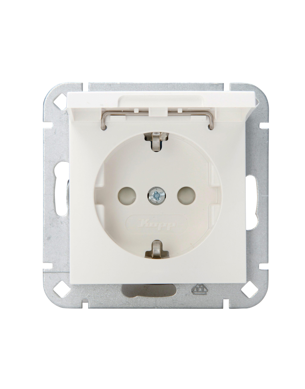Πρίζα σούκο με καπάκι τύπου Kopp HK07 λευκή. Έχει τάση τροφοδοσίας 250V και ένταση ρεύματος 16A. Η σύνδεση γίνεται με βιδωτό ακροδέκτη και η στερέωση με άγκιστρο και βίδα. Ο βαθμός στεγανότητας είναι IP20. Ο μηχανισμός και η υποδοχή της πρίζας πωλούνται μαζί ενώ το πλαίσιο ξεχωριστά.