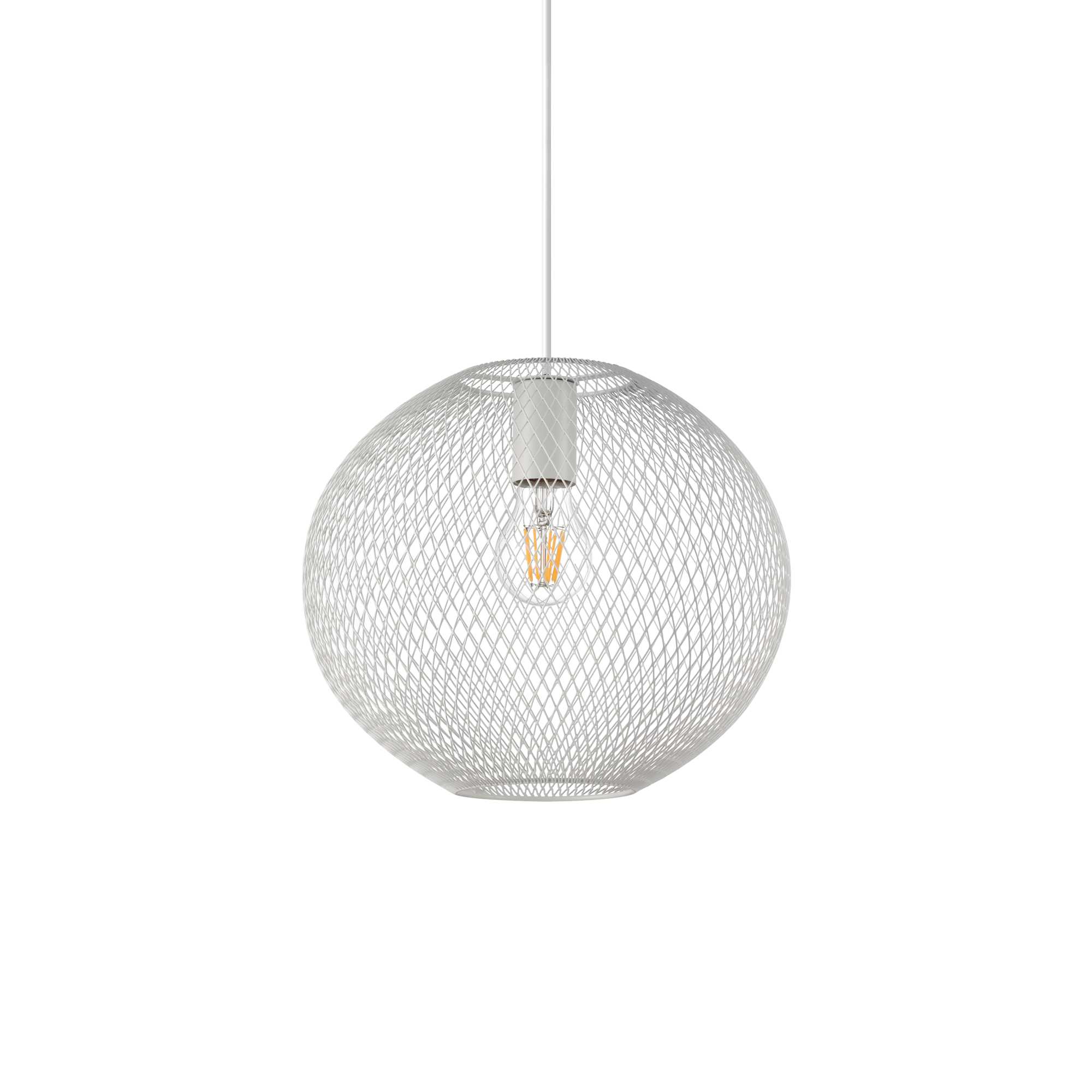 Ροζέτα σε ματ βαμμένο μέταλλο. Καλώδιο PVC. Διαχύτης σε ματ βαμμένο μεταλλικό πλέγμα. Φινιρίσματα: λευκό, μαύρο, χρυσό.