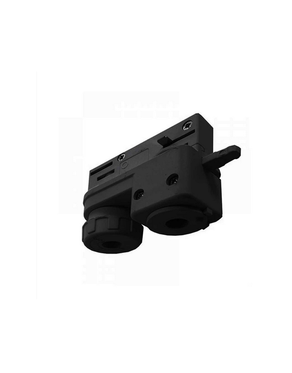 Ηλεκτρικός αντάπτορας για μονοφασική ράγα Universe. Είναι από πλαστικό και χάλκινο υλικό σε μαύρο χρώμα.
