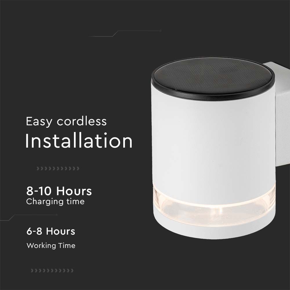 Ηλιακό Επιτοίχιο Φωτιστικό LED Σποτ Down 0.55W Λευκό V-TAC Θερμό Λευκό 3000K – 23013