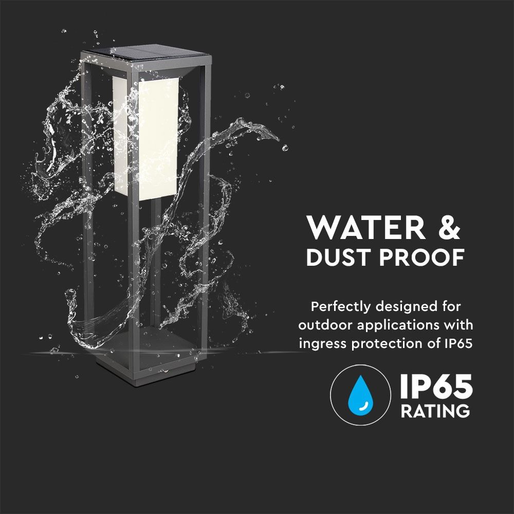 V-Tac VT-66 Γκρι LED φωτιστικό κήπου 2W με τεχνολογία Samsung SMD LED, βαθμό προστασίας IP65, αισθητήρα λυκόφως και κίνησης και ηλιακό πάνελ.